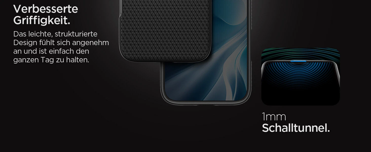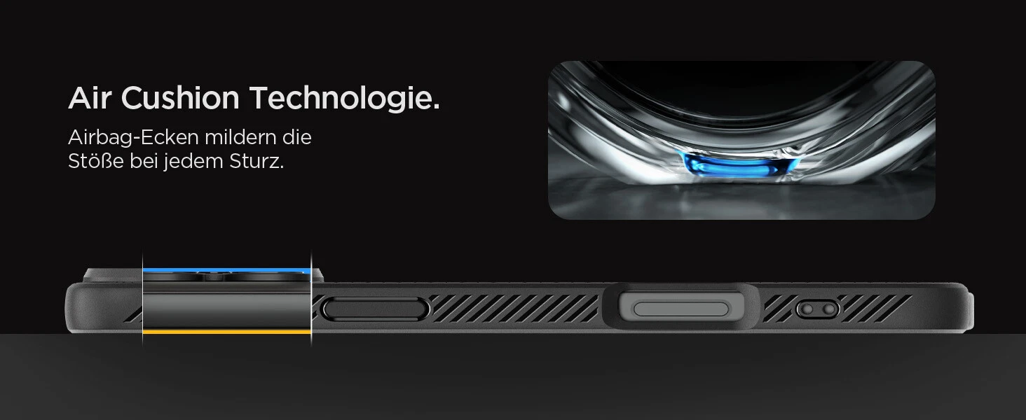 Schutz: Erhöhte Kanten heben Bildschirm und Kamera von flachen Oberflächen ab. Air Cushion Technology bietet zusätzlichen Fallschutz.
