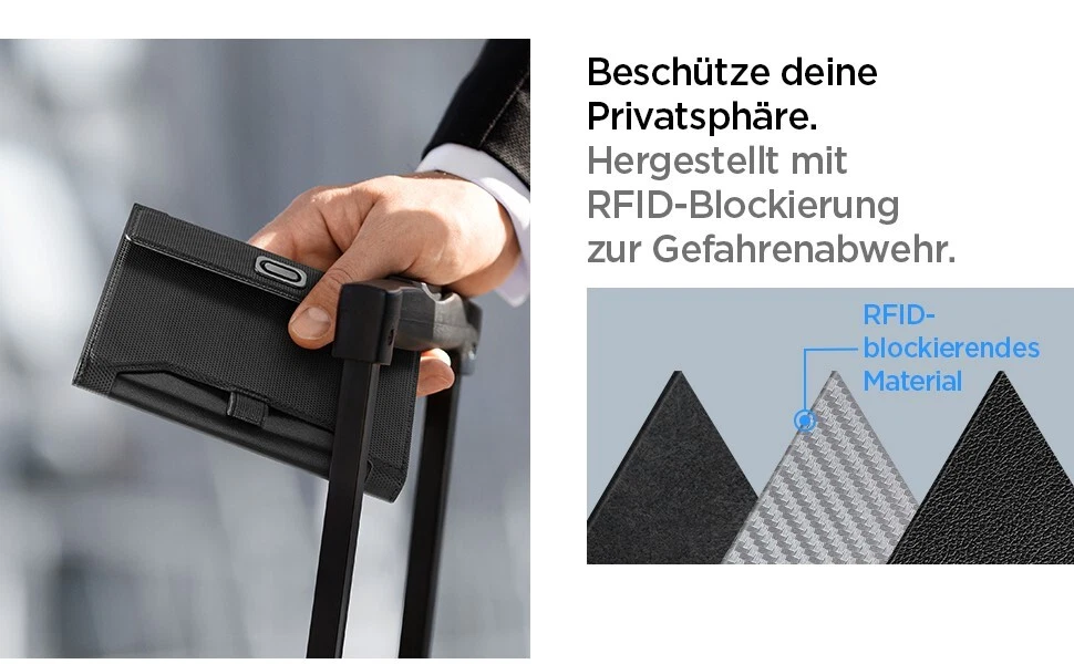 - RFID-Schutz: Blockiert RFID-Signale zum Schutz vor Bedrohungen